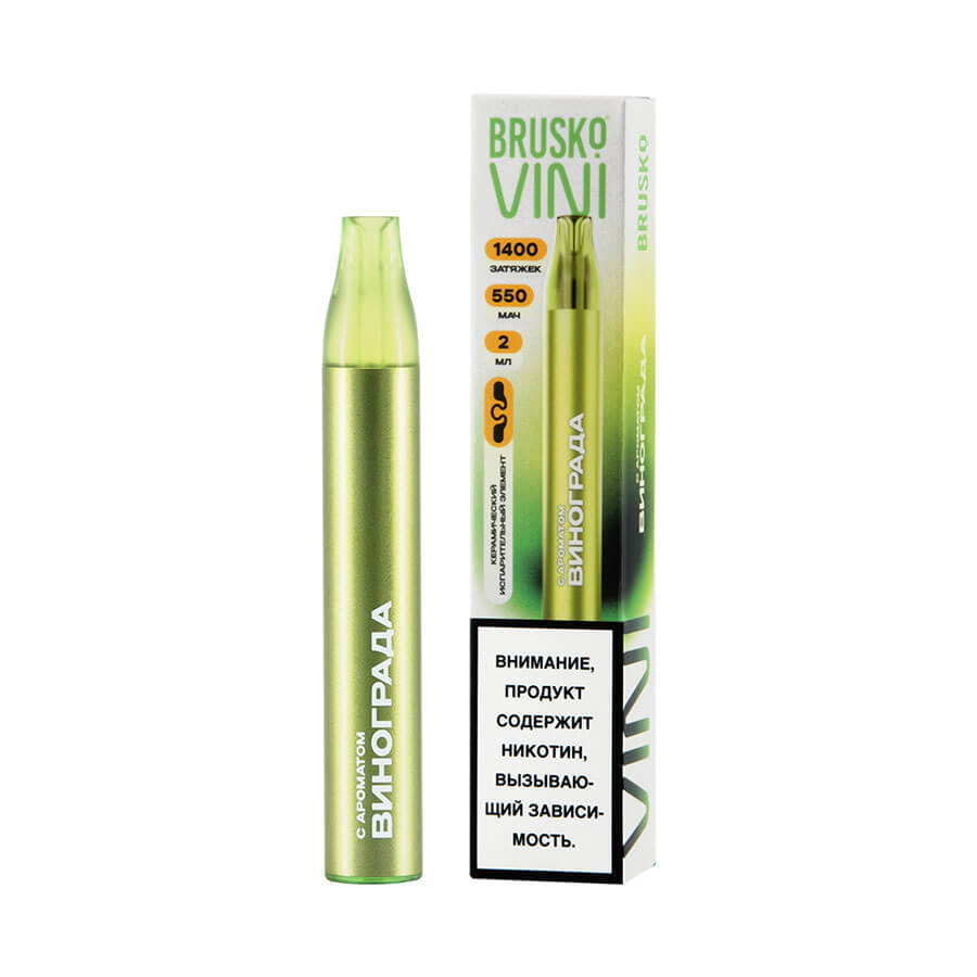 Бренд Brusko развивается в вейп-индустрии с 2016 года, линейка Vini относится к новому поколению компактных решений, а модель Brusko Vini 1400 Виноград выделяется надежным ресурсом и продуманной конструкцией, поэтому ее выгодно купить по понятной цене как для личного использования, так и для витрины розничной точки, где важна быстрая отгрузка по Москве и МО курьером и по регионам России через СДЭК.
