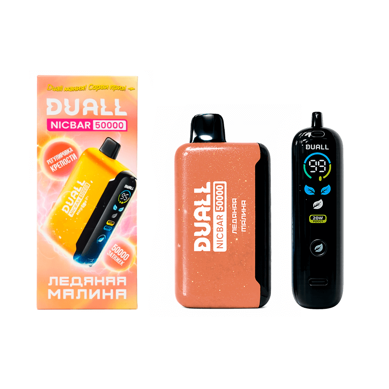 Бренд DUALL появился в России в 2018 году и за несколько лет вырос из производителя жидкостей в создателя устройств нового поколения. Модель DUALL NICBAR 50000 Ледяная малина относится к сегменту одноразовых электронных сигарет, предлагает объём жидкости 20 мл, аккумулятор 950 мАч и цветной дисплей, который показывает заряд и остаток заправки. Производитель делает акцент на стабильном качестве партии, поэтому вкус и тяга из разных устройств ощущаются одинаково и не подбрасывают сюрпризов.