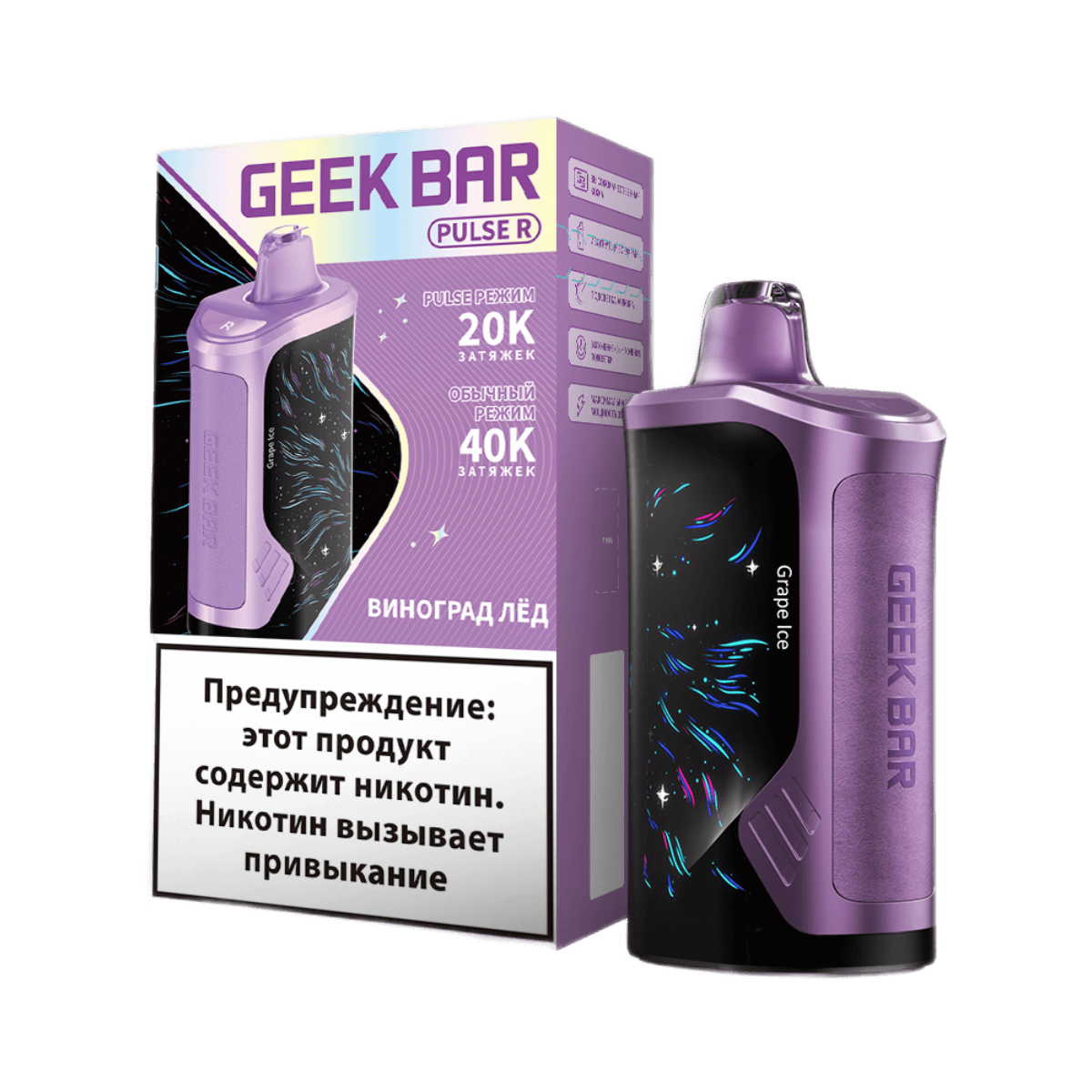 GEEK BAR Pulse R 40000 Виноград лёд представляет собой современное решение в сегменте одноразовых устройств, ориентированное на стабильную работу и насыщенный пар. Эта модель относится к новому поколению линейки Pulse R и сочетает продуманную электронику с высоким ресурсом. Устройство создано брендом GEEK BAR, основанным в 2015 году и хорошо известным вейп-сообществу благодаря технологичному подходу.
