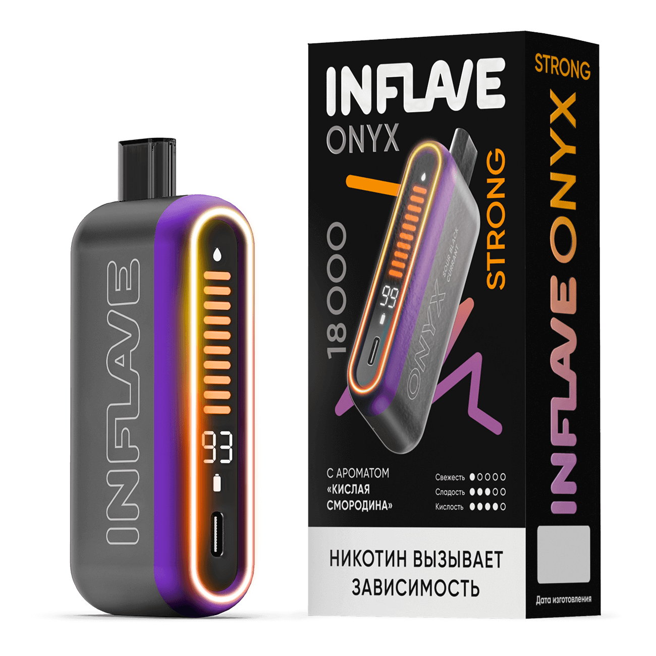 INFLAVE Onyx 18000 STRONG Кислая смородина относится к сегменту, где одноразовая электронная сигарета объединяет технологичность и продуманную подачу вкуса. Бренд INFLAVE был основан в 2021 году и за короткое время закрепился как производитель устройств нового поколения с акцентом на стабильность и контроль качества. Серия Onyx STRONG была представлена как обновлённая платформа, ориентированная на длительное использование и современный формат вейпинга.