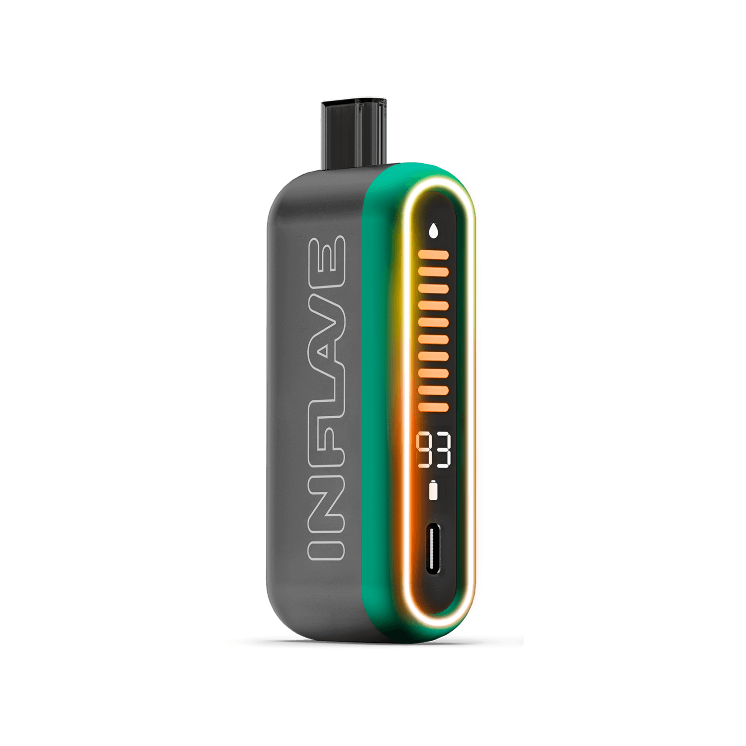 INFLAVE Onyx STRONG 18000 Кислое драже создано на базе прочного алюминиевого корпуса и футуристичной формы, чтобы девайс было удобно держать каждый день. По данным производителя, запас рассчитан примерно на 18000 затяжек и 16 мл жидкости, а цифровой дисплей показывает уровень заряда и остаток жидкости, помогая контролировать ресурс без догадок. Фирменная подсветка INFLAVE AURA подчеркивает стиль, а фильтр, предотвращающий протечку, делает использование аккуратнее и спокойнее. Внутри стоит микросхема и датчик затяжки, поэтому включение происходит автоматически и предсказуемо.