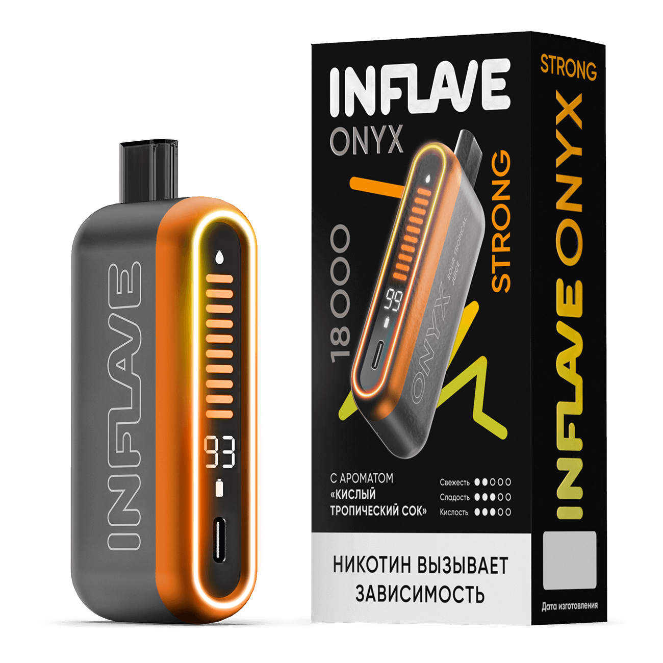 Одноразовая электронная сигарета INFLAVE Onyx 18000 Strong Кислый тропический сок создана для пользователей, которые ценят стабильную работу и насыщенный вкус без компромиссов. Эта электронка относится к новому поколению устройств и сочетает увеличенный ресурс, современную электронику и продуманный формат для ежедневного использования. Модель уверенно удерживает позиции на рынке вейпов благодаря сбалансированным характеристикам и качественной сборке.